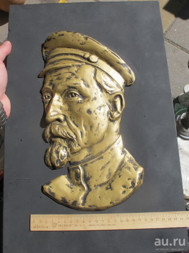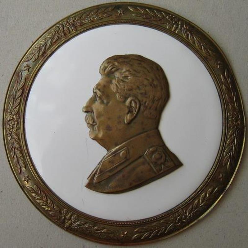 Бронзовый рельеф вождя произведен на Монетном дворе, имеет 12 с половиной сантиметров в высоту. Скорее всего, остался от какой-то массовой серии 40-х годов.