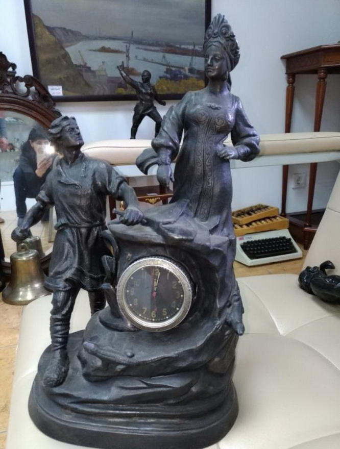 Внешне – типичный образчик послевоенного советского масскульта, но продавец называет фигурку «редкой», т.е. интересной для коллекции. Высота – 36 см, материал – шпиатр, сплав нескольких металлов. Цена – $236.