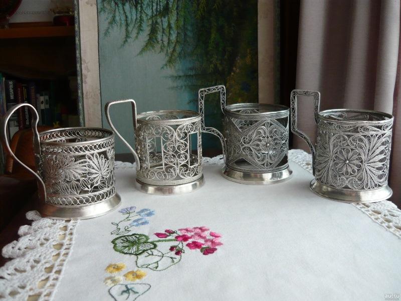 Вещь, прежде обычная в общепите, сейчас интересна только эстетам и коллекционерам. Тут выставили предметы, хоть и фабричные, но тонкой работы, каждый с оригинальным узором. За 10 подстаканников просят $197.