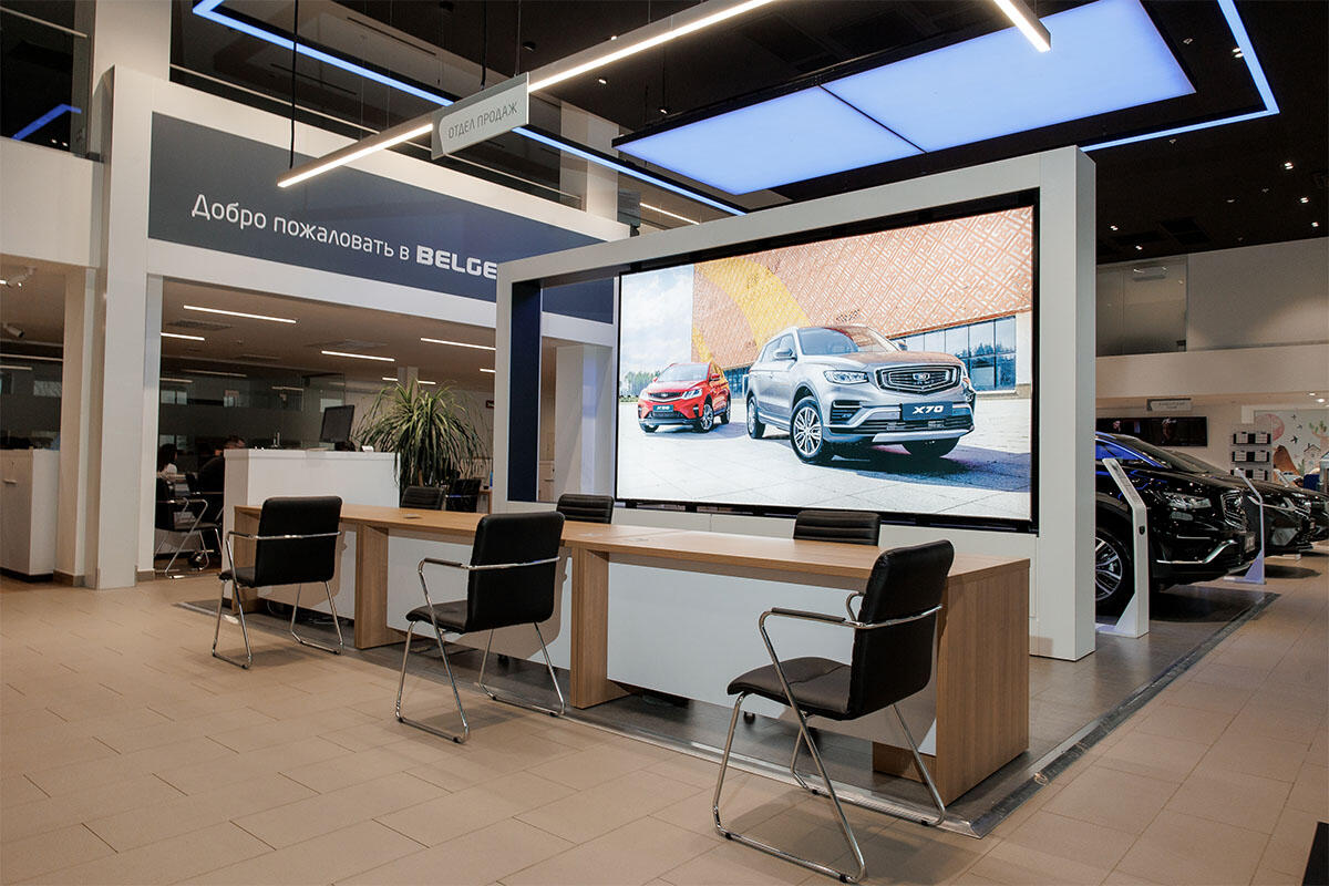 Общая площадь нового дилерского центра BELGEE – более 1500 кв. метров. Из них около трети площадей приходится на просторный шоурум и комфортные зоны для клиентов, и более 1000 кв. метров отданы официальному сервису с мойкой на 2 поста и участку кузовного ремонта полного цикла, на которых производятся обслуживание и ремонт не только автомобилей BELGEE, но и моделей бренда Geely.