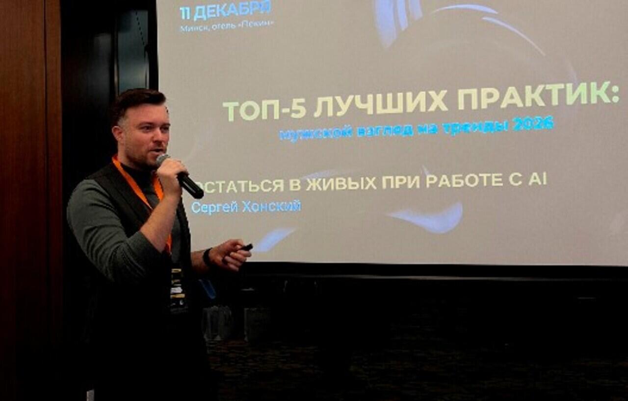 В продолжение темы о взаимодействии с ИИ, актуальными оказались советы психолога Сергея Хонского, у которого тема выступления звучала как «Остаться в живых при работе с AI». Он отметил, что если раньше мы жили в парадигме «я думаю → инструмент помогает», то сегодня легко скатиться в режим «инструмент думает → я соглашаюсь». Главные вопросы современности, по его мнению, – как жить рядом с ИИ, не потеряв человечность, интуицию и вкус к эксперименту, и как не стать пассивным наблюдателем собственной жизни.