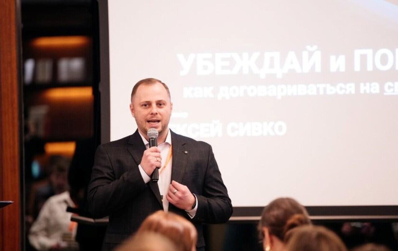 Спикер Алексей Сивко, обозначивший своей миссией «повышение культуры продаж и усиление команд», делился опытом проведения и построения переговоров «на своих условиях».