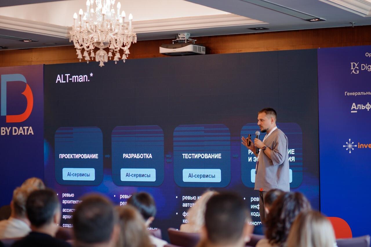 ALT-man.Reviewer сокращает время на ревью кода в 10 раз и позволяет разработчикам оперативно получать отчеты по коду и задачи на исправление в режиме 24/7. Другой важный компонент — ALT-man.TestWriter, автоматизирующий процесс создания тестовой документации и позволяющий QA-инженерам сократить время на формирование тестовых сценариев минимум вдвое. Спикер подчеркнул в своем выступлении: “Важно постоянно пробовать разные открытые модели и тестировать их.