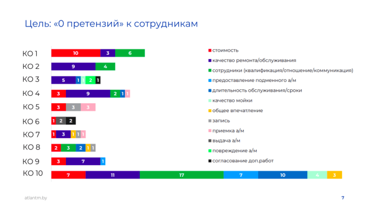Но стратегические метрики – это показатель общей картины. Чтобы правильно интерпретировать их динамику, мы используем операционные метрики на отдельных точках взаимодействия клиента с компанией, таких как уровень выполнения стандартов всем фронт-офисом, оценка первого впечатления клиента после посещения офиса продаж, CSI и CES на отдельных этапах CJM.
