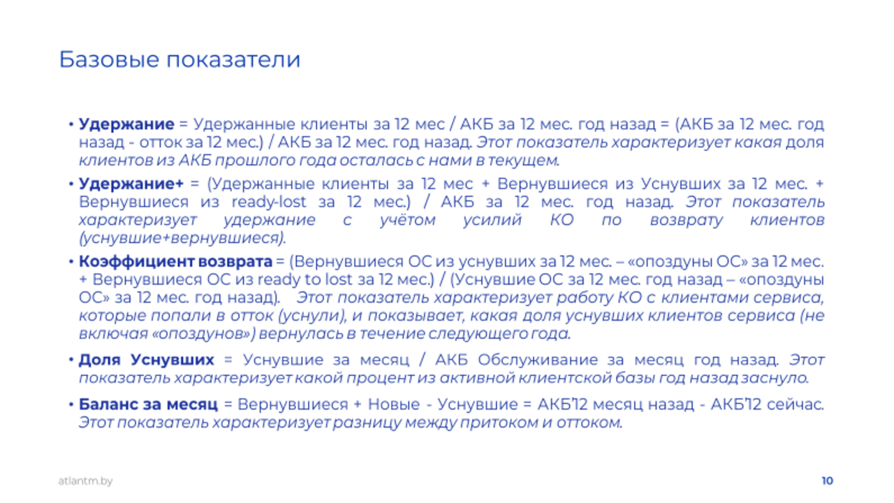 Мы также замеряем NPS и планируем его углубить. Внедрили новые показатели: удержание, коэффициент возврата, доля уснувших, баланс за месяц. На практике увидели, что они работают.