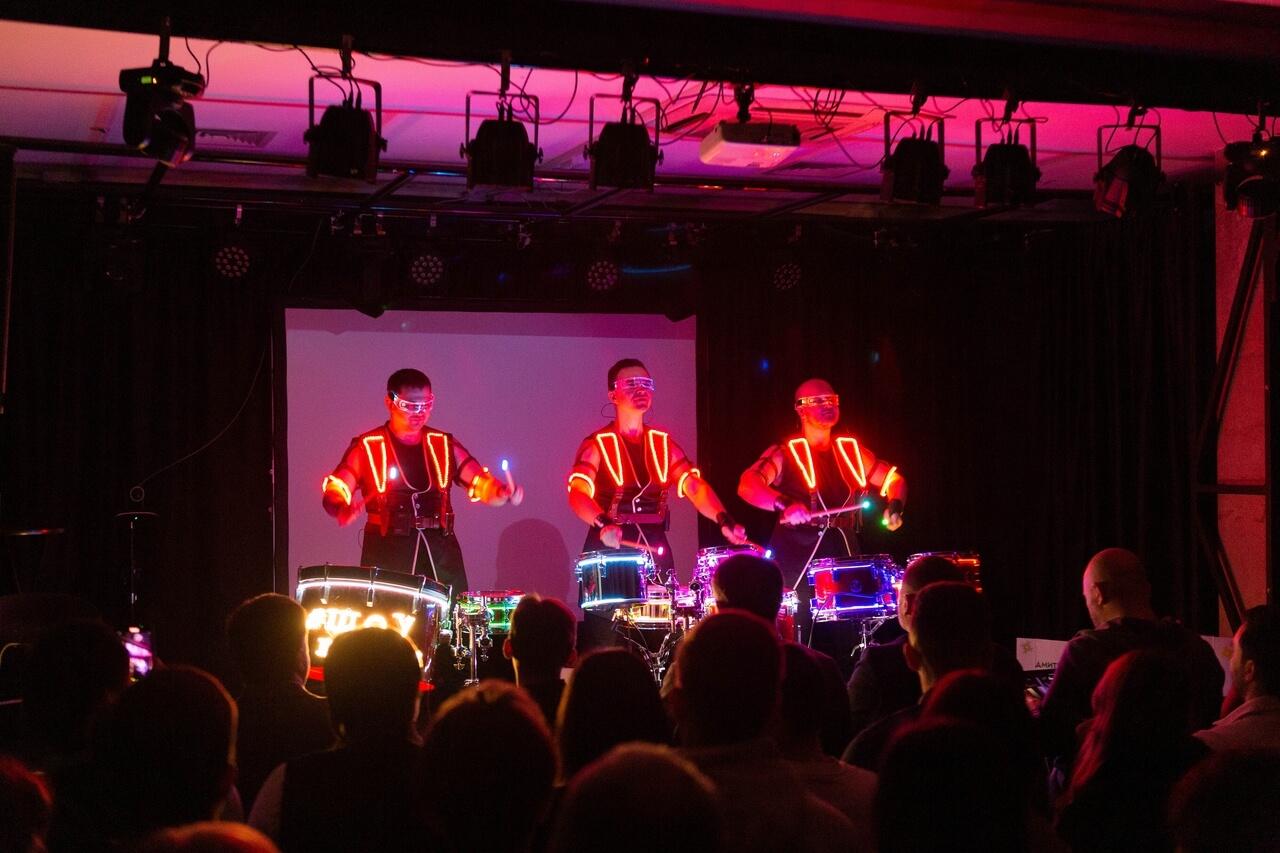 После яркого перфоманса от шоу барабанщиков «Перцы» перед участниками выступил совладелец, креативный директор агентства AIDA Pioneer Branding & Creative Дмитрий Аполенис. Предприниматель рассказал, насколько важен брендинг для стартапов.