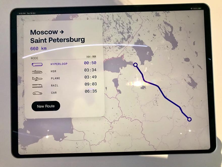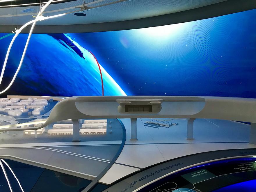 Намного более утилитарным выглядит огромный павильон логистического гиганта DP World. Основная инновация и, пожалуй, главная технология, представленная на всей выставке в целом — пассажирский транспорт Virgin Hyper Loop. На данный момент проект уже находится на стадии реализации и представляет собой вакуумный тоннель, в котором под давлением перемещаются капсульные кабины с пассажирами со средней скоростью 850 км/ч. Подобный транспорт прошёл проверку безопасности и является полностью пригодным для обслуживания массового ежедневного человекопотока. Первый проект будет реализован между Дубаем и Абу-Даби. Добраться из точки А в точку В можно будет всего за 15 минут. А, к примеру, время в пути от Москвы до Санкт-Петербурга составило бы 50 минут. Транспорт является полностью экологически-чистым. Это изобретение, за которым стоит внимательно следить и которое в скором времени может изменить само понятие мобильности и мир в целом.