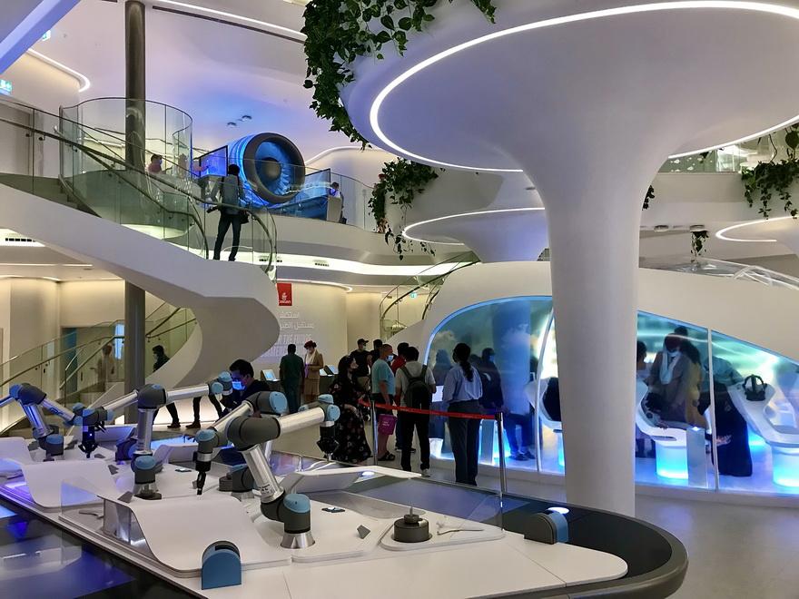 Стоит отметить что Emirates применимых здесь и сейчас инноваций не представляет. Павильон одного из основных мировых перевозчиков — чисто маркетинговая история, способная развлечь аудиторию (например, авиа-путешествие будущего в шлеме вирутальной реальности) и выработать дополнительную лояльность целевой аудитории. С маркетингом и бюджетом на него у Дубая проблем нет.
