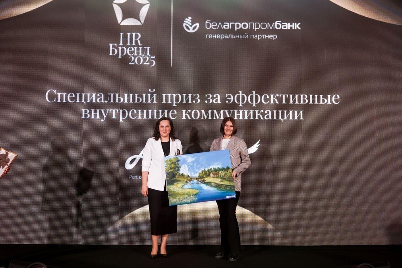 Генеральный партнер конкурса «Премия HR-бренд 2025» ОАО «Белагропромбанк» учредил специальный приз за эффективные внутренние коммуникации. Символично, что выбранной команде была передана картина, написанная одним из участников проекта Белагропромбанка «Мой мир в красках». Этот социальный проект победил в конкурсе «HR-бренд Беларусь» в прошлом году. Он направлен на поддержку молодых художников с ограниченными возможностями.