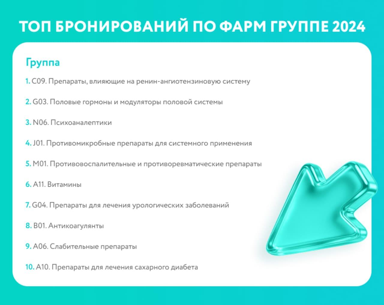 Наиболее часто бронируемые препараты на 103.by — это лекарства, влияющие на сердечно-сосудистую систему, гормональные средства и психоаналептики. Эти категории демонстрируют устойчивый спрос со стороны пользователей платформы.
