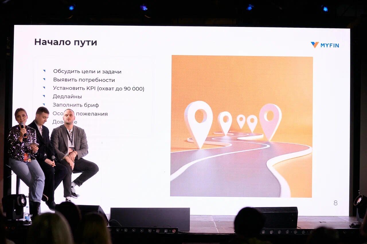 В секции для маркетологов CEO Myfin.by Марина Латышева-Андреева представила маркетинговые решения портала в стиле кейс-бар совместно с замглавы отдела маркетинга ОАО «Белагроздравница» Романом Липским и СЕО логистической компании RTL Alliance Геннадием Гогенией.