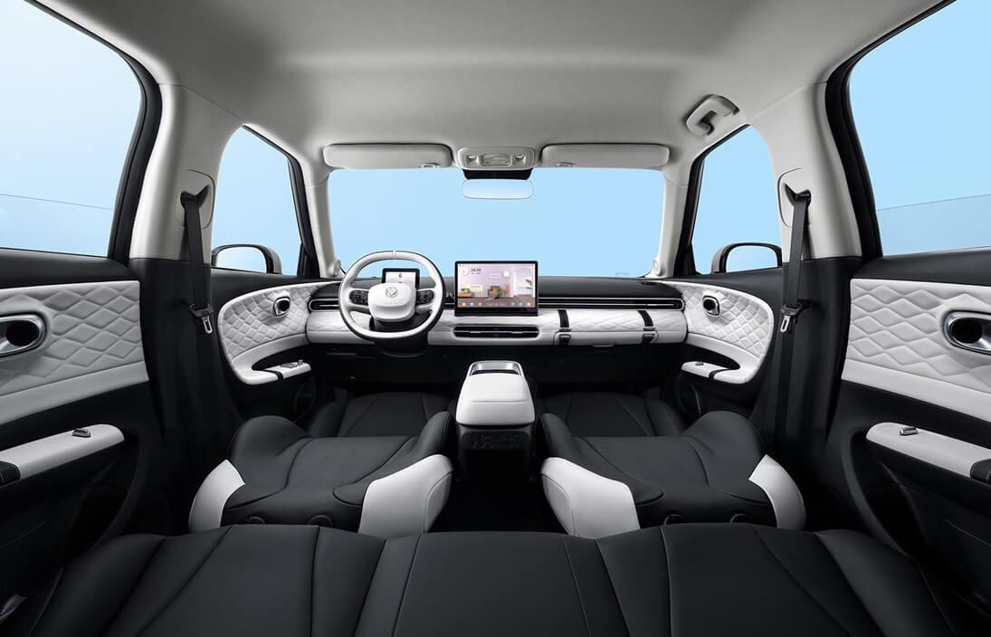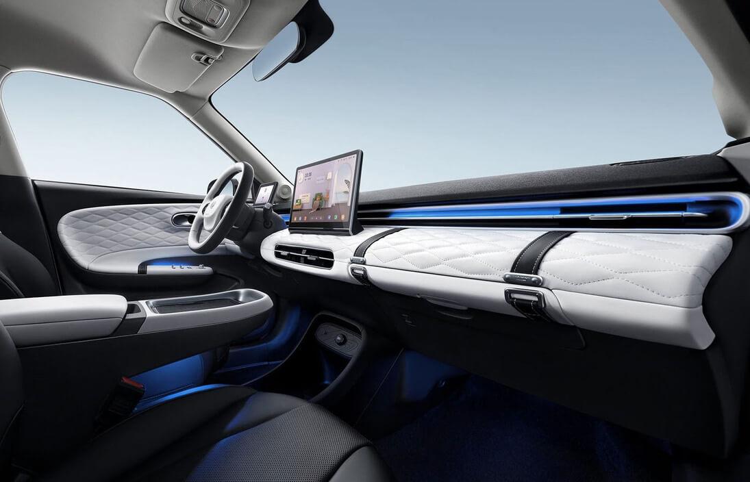Оригинальную внешность BOX дополняет стильный интерьер с контрастными вставками белого или серого цвета, имеющими ромбовидную прострочку. Также обращают на себя внимание мягкая обшивка передней панели с необычной выдвижной полкой, отдельный экран цифровой панели приборов, большой ULTRA HD экран мультимедийной системы с диагональю 12,8 дюймов и дружелюбным интерфейсом, множество вариантов атмосферной подсветки, специальная площадка для зарядки смартфонов в центральном подлокотнике.