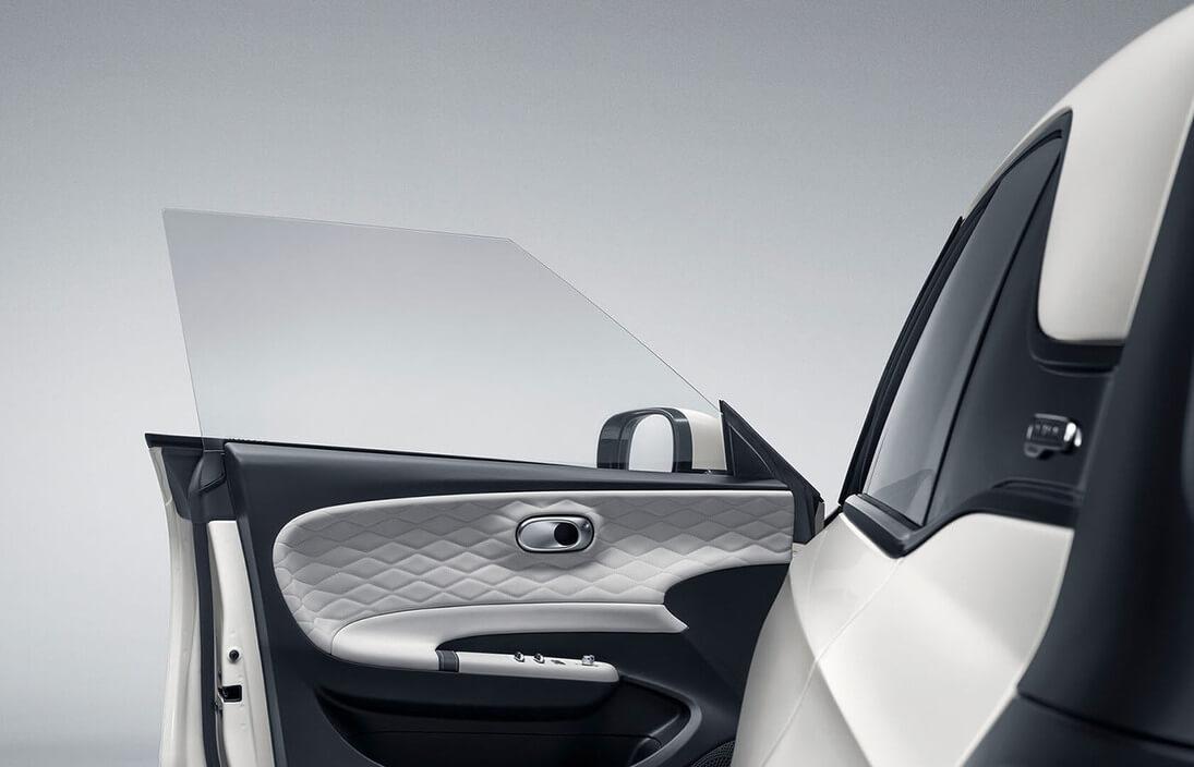 Представленный под слоганом «100% электро, 100% впечатлений», новый BOX – это яркий, дизайнерский электромобиль, в котором реализовано множество смелых и креативных решений. В его внешности стоит отметить оригинальную фигурную светодиодную LED-полосу фронтальной оптики, откидные внешние ручки дверей, безрамочные боковые стекла, яркие цвета кузова в сочетании с белой крышей, двухцветные литые диски R17 с алмазной шлифовкой.
