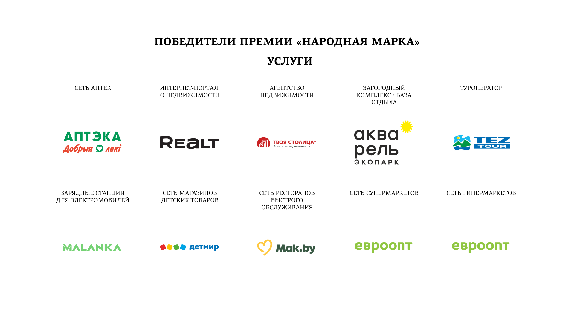 «Народная Марка»– ежегодная Премия, которая определяет бренды-лидеры потребительских предпочтений по широкому перечню товаров и услуг массового спроса, а награды Премии являются престижным символом народной любви и доверия к производителям.