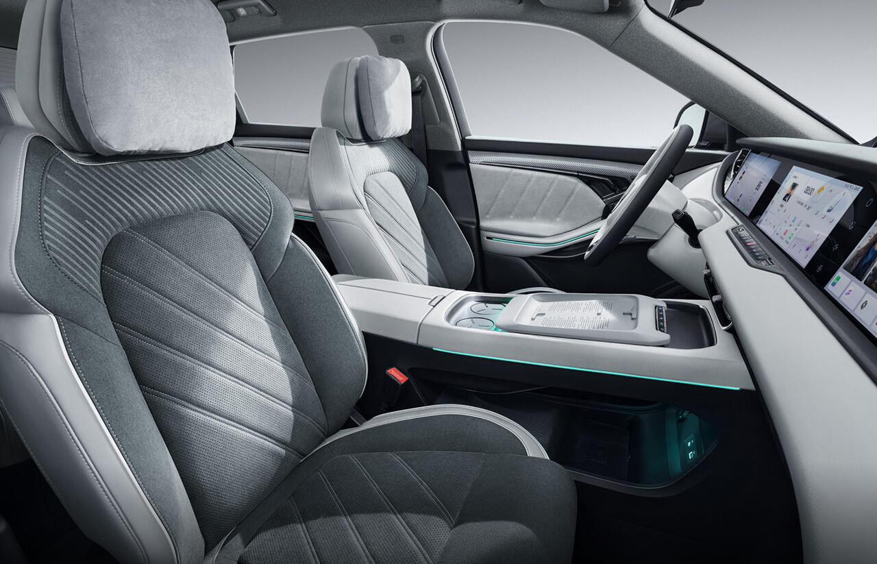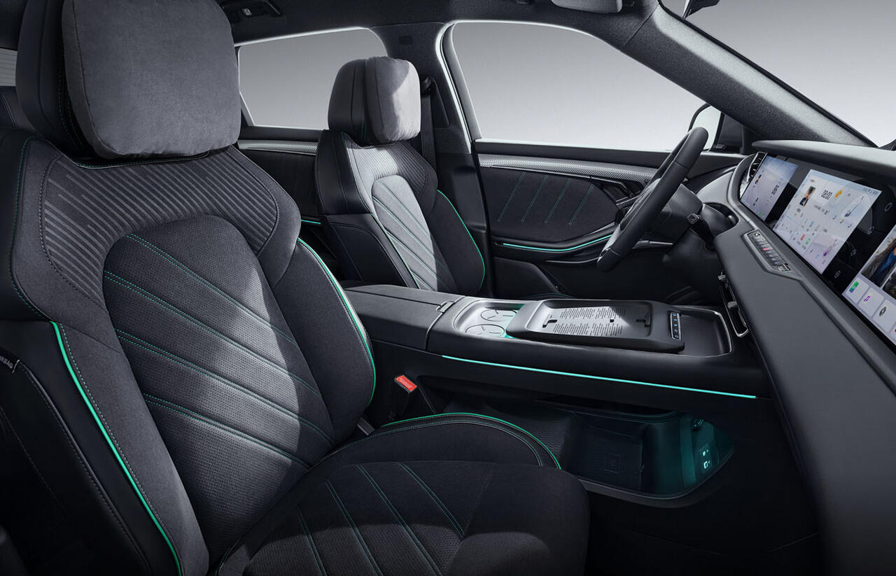 Voyah Free 318 получил абсолютно новые варианты цветового решения интерьера: темно-серый с изумрудной прострочкой и светло-серый.