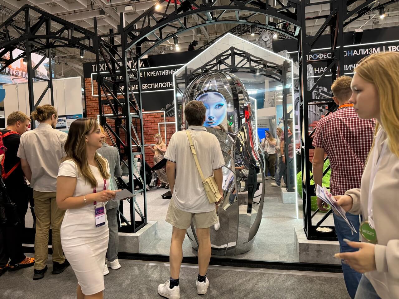 Прокатиться или отправиться на экскурсию в другой город в специальных очках можно бесплатно. Роботы берутся ответить на любые вопросы, а цифровая матрешка подмигнет и пригласит взглянуть на стенд российских партнеров.
