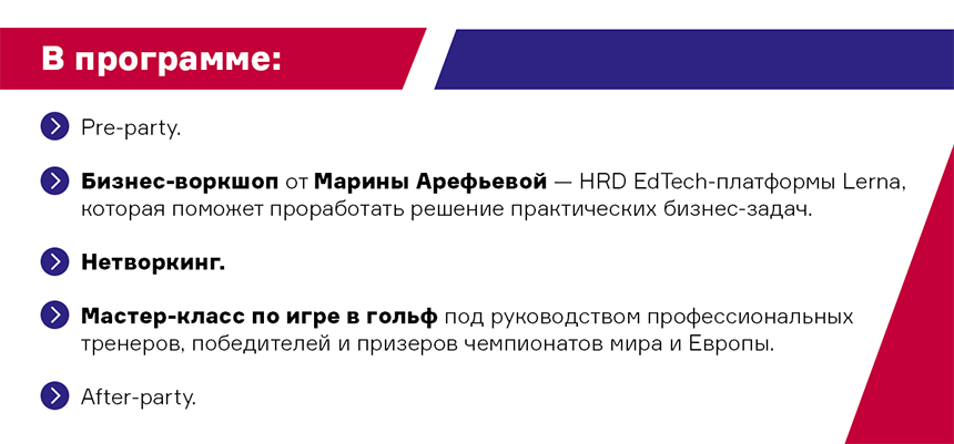 На выходе участники AMDG Club не только познакомятся с основами игры в гольф, узнают особенности хвата, правильной стойки перед ударом и механику взмаха, но и найдут решение прикладных бизнес-задач.
