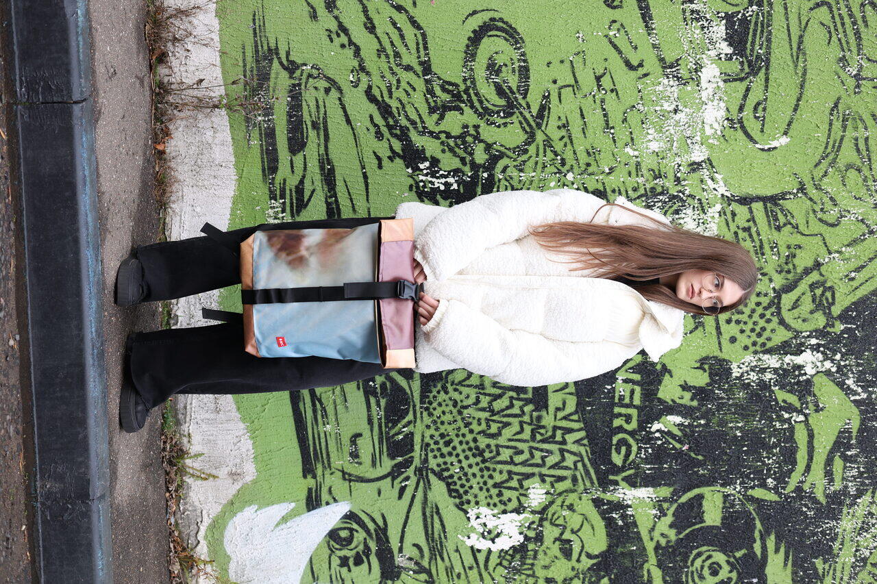 Экомерч для МТС создал минчанин Артур Дубовик, специализирующийся на теме вторичной переработки. Почти 300 кв.м. баннерного материала, который ранее в виде рекламы бренда размещался на билбордах на улицах Минска, перешиты в модные сумки и рюкзаки.
