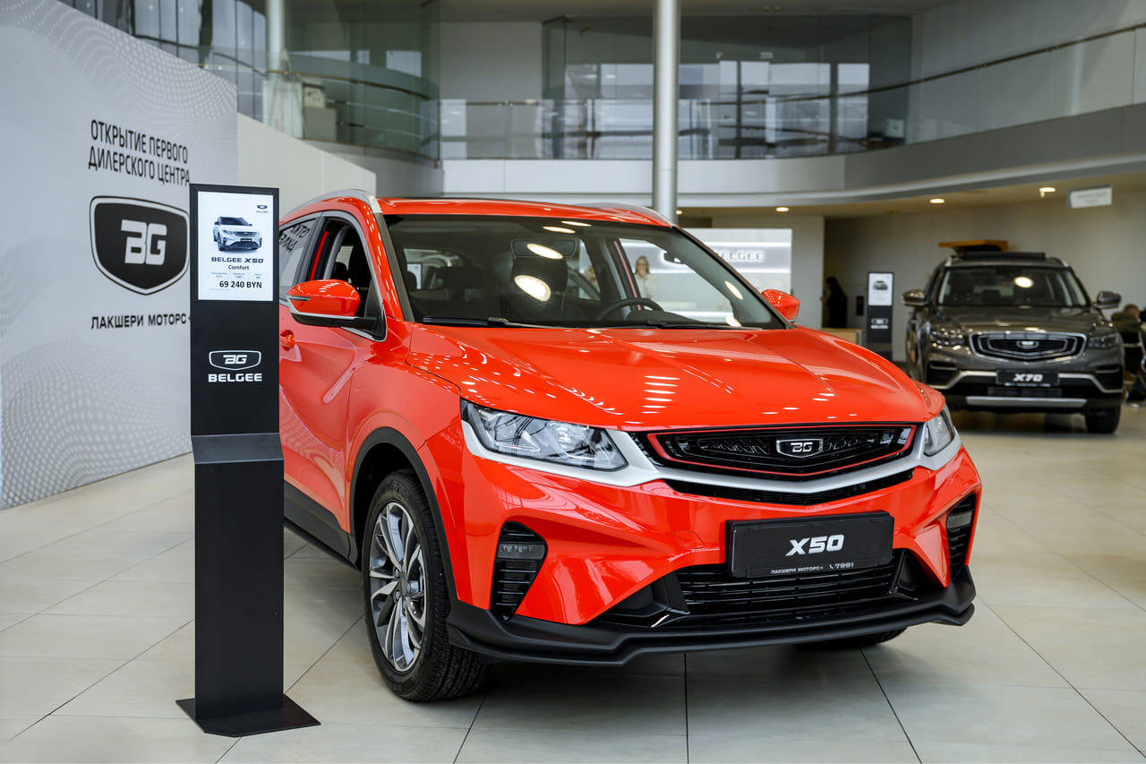 - компактный и динамичный кроссовер BELGEE X50, удачно сочетающий современный дизайн с практичностью, умеренным расходом топлива, ценой в 69 240 BYN за комплектацию Comfort из числа машин в наличии;