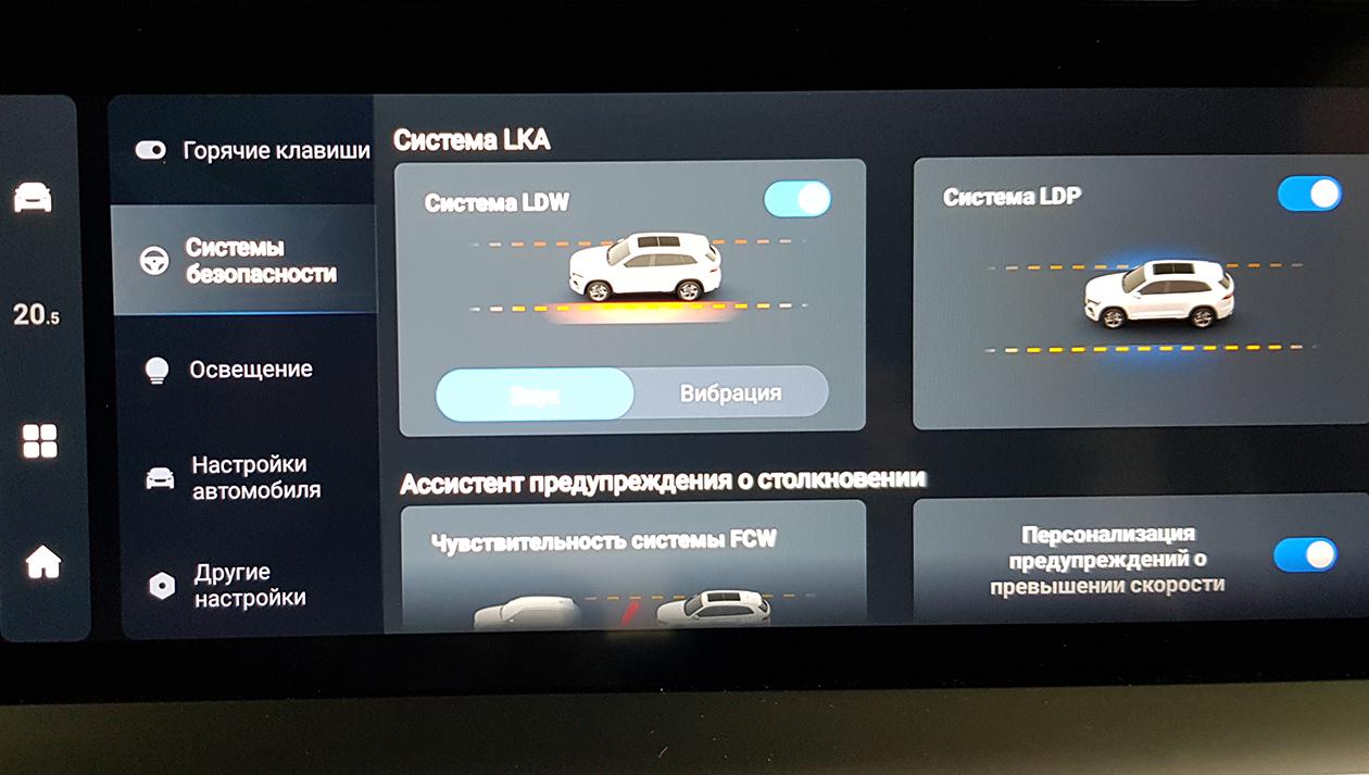 Если вести речь об ассистентах водителя, то их в Monjaro полный комплект. Чтобы попробовать все в действии, ушло немало времени тест-драйва. Вердикт же краток: работают отлично. Это касается и адаптивного круиз-контроля, и системы удержания в полосе, и камер кругового обзора, и системы предупреждения о приближающихся автомобилях.
