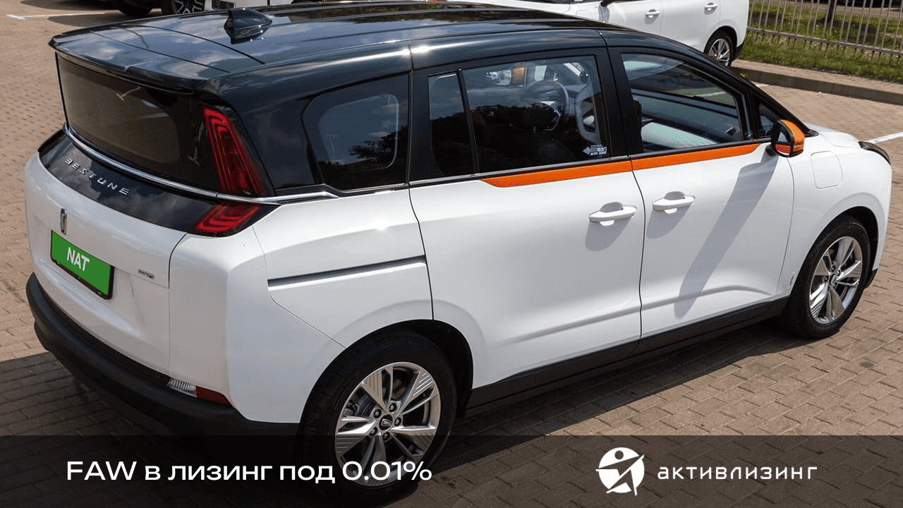 Автомобили FAW Bestune NAT и FAW Bestune T77 стали еще доступнее благодаря новой программе . Группа компаний «Активлизинг» и официальный дилер «Фелокт-Сервис» запустили партнерскую программу в белорусских рублях с единой ставкой 0,01% на весь срок лизинга - на три года! Эти условия делают покупку автомобиля выгодной и доступной и для физических, и для юридических лиц.