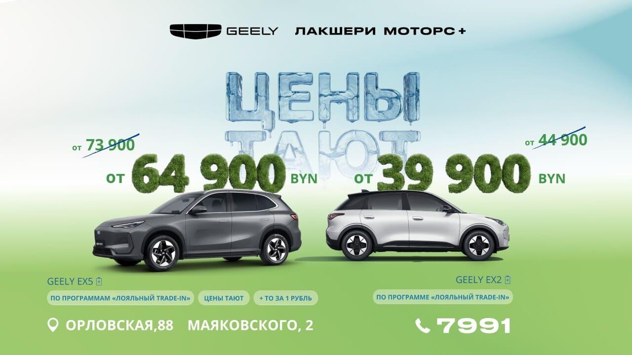 - При покупке автомобиля по программе Trade-in выгода – 3 000 BYN (только для Geely EX2).
