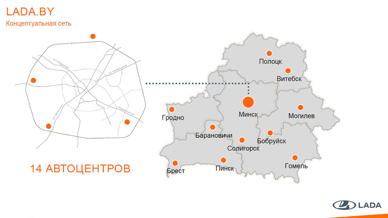 Сеть также планирует увеличить присутствие в регионах: в дополнение к уже существующим автоцентрам в областных городах, Бобруйске, Солигорске, Пинске и Полоцке, автоцентр российского бренда скоро появится в Барановичах. Это будет один из крупнейших автосалонов сети Lada.by, оснащенный в соответствии с корпоративными стандартами.
