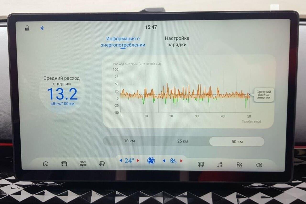 Теперь, зайдя в меню «Экраны», можно выбрать, по какому циклу ваш автомобиль будет оценивать оставшийся запас хода: СLTC, NEDC (New European Driving Cycle) или WLTC (Worldwide harmonized light vehicles test cycle). Последний, к слову, на 100 % заряда тяговой батареи емкостью 51,5 кВт⋅ч обещает 380 км запаса хода JAC E30X Flagship Pro 505. Белорусские тест-драйвы версии Flagship Pro 505 показали, что данная цифра вполне реальна, особенно если речь идет о езде по городу.