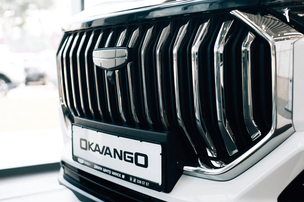 У Geely Okavango отличная внешность с массивной решеткой радиатора и правильными линиями кузова. Подчёркнутые широкие колёсные арки, 19-дюймовые легкосплавные диски, контурные задние комбинированные фонари рейлинги на крыше отлично соответствуют солидному образу кроссовера.