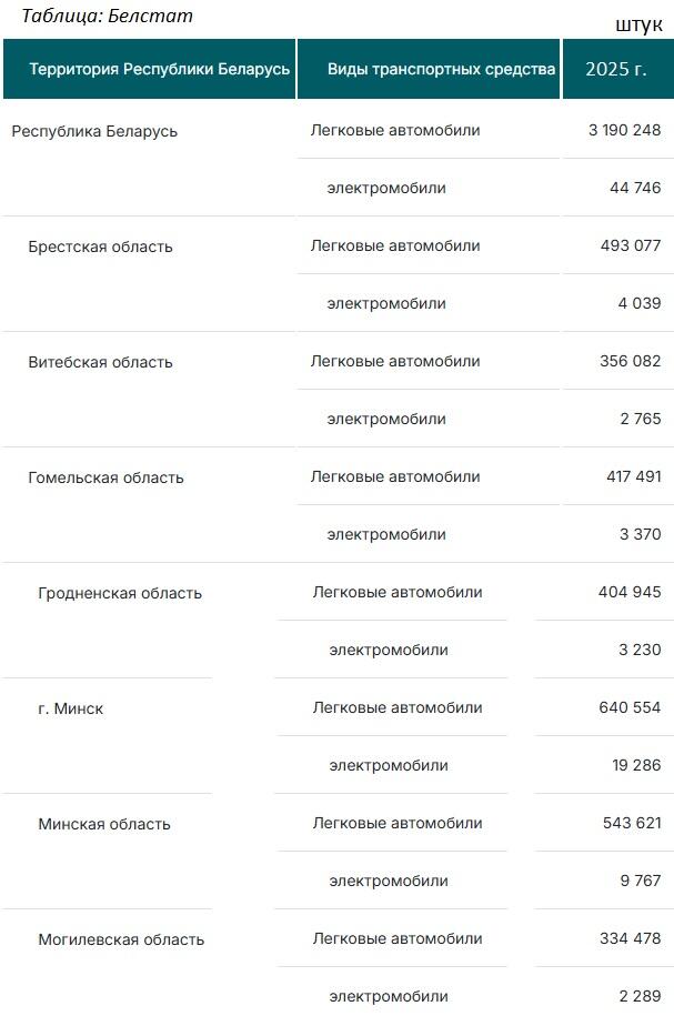 Витебская область — 356 082 (электромобили — 2 765);