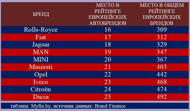 Попали в рейтинг и другие автомобильные бренды: например, Rolls-Royce, Fiat, Maserati, Opel.