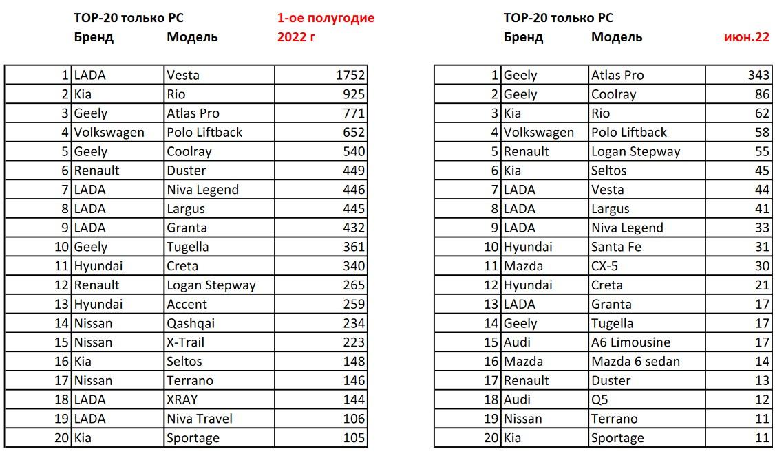 ТОП–20 БАА по продажам за первое полугодие и за июнь (соответственно) выглядит так: