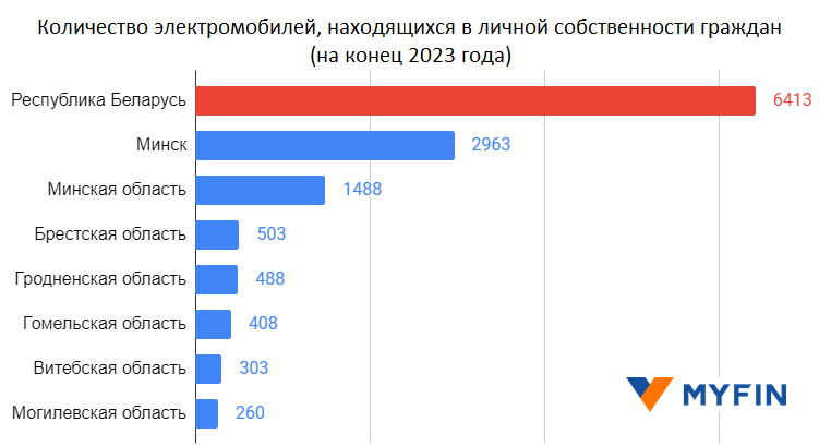 По информации Белстата, на конец 2023 года в личной собственности граждан находилось 6413 электромобилей.