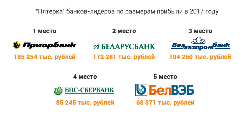 Показатели прибыли колеблются от 185 миллионов рублей – у «Приорбанка», который в 2017 заработал больше всех, до 198 тысяч рублей – у Банка «Решение». Несмотря на этот факт последний банк в минувшем году сделал важный рывок – вышел на прибыльность. Так, в 2016 году работал в убыток и потерял более 5,6 млн рублей.