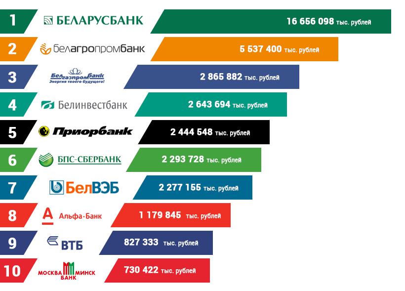 десятое – Банк Москва-Минск – 730 422 тыс. рублей (753 065 тыс. рублей).