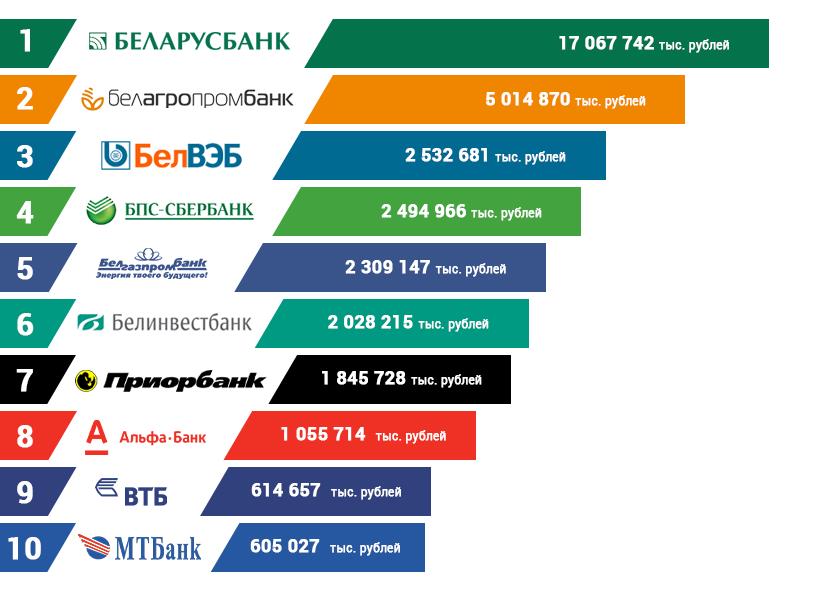 десятое – МТБанк – 605 027 тыс. рублей (457 347 тыс. рублей).