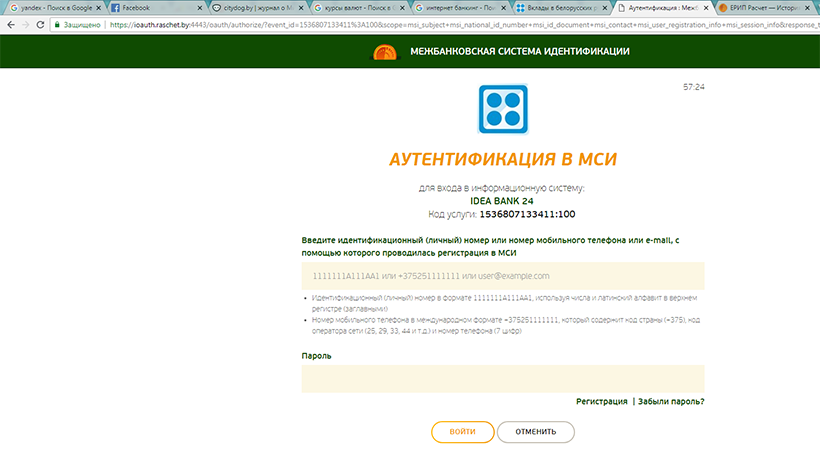 Новое окно мне сообщает, что МСИ – Межбанковская система идентификации – предлагает мне войти в информационную систему IDEA BANK 24. Для этого мне нужно ввести свои данные, однако в МСИ я тоже не зарегистрирована. Зато есть кнопка «Регистрация».