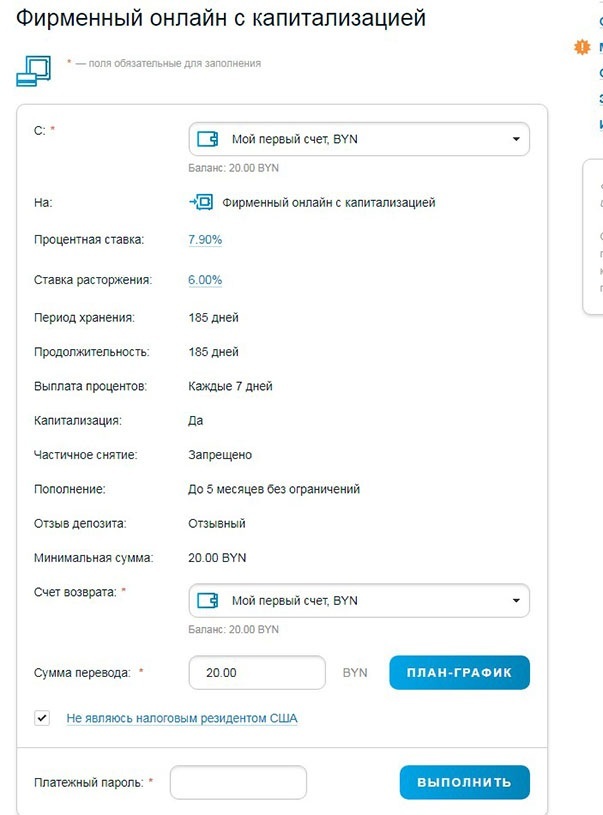 Кликаю на предпочтительный для меня срок вклада – 185 дней – и смотрю параметры: