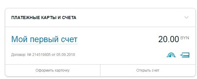 Остался последний шаг – зачислить деньги на вклад. Для этого система предлагает открыть счет в Идея Банке. Эта услуга в «Онлайн-банк» бесплатная и очень простая. Возвращаюсь на главную страницу, кликаю на «открыть счет». Все, в белорусских рублях счет уже есть.