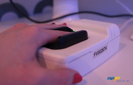 Второй сюрприз Идея Банка, скажем прямо, поразил наше воображение. В ходе ТИБО-2014 Myfin.by прикоснулся к настоящей биометрии. Специальный считыватель привезли в Беларусь польские разработчики.