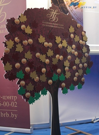 Это не единственное решение Национального банка в области повышения финграмотности населения. На стенде на специальном экране показывается презентация о работе регулятора над финграмотностью белорусов, а чуть левее расположено дерево финансовой грамотности – игра, в ходе которой каждый желающий может проверить свои финансовые знания, отвечая на различные вопросы.