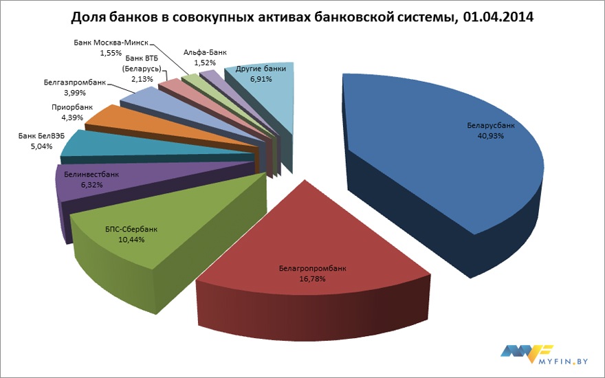 Совокупные активы банковской системы Беларуси по состоянию на 1 апреля 2014 года составили 408 052 447,10 млн белорусских рублей. Прирост совокупных активов за 1 квартал 2014 года составил 3,33%.