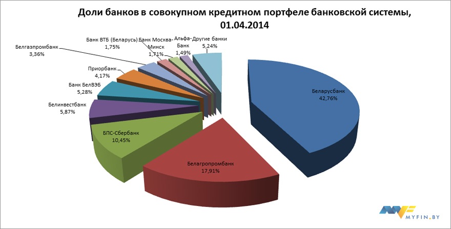 Совокупный кредитный портфель банковской системы по состоянию на 1 апреля 2014 года составил 277 624 611,1 млн белорусских рублей. Прирост по сравнению с 1 января 2014 года достиг 4,87%.