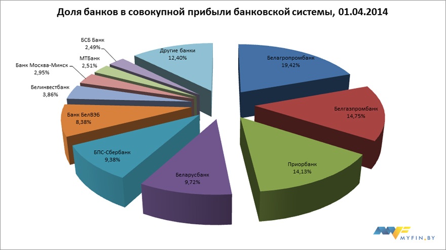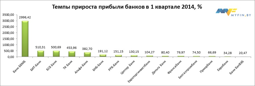 Показатель прибыли для сопоставимости сравнивался с показателем прибыли за аналогичный период прошлого года, то есть с показателем по состоянию на 1 апреля 2013 года. Источником данных послужили бухгалтерские балансы банков, опубликованные на сайте Национального банка Республики Беларусь.