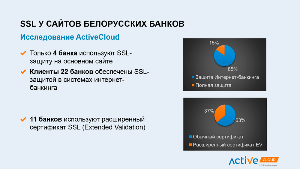 Специалисты ActiveCloud проанализировали рекомендации Qualys SSLLabs по устранению выявленных проблем и подобрали наиболее актуальные для сайтов белорусских банков: