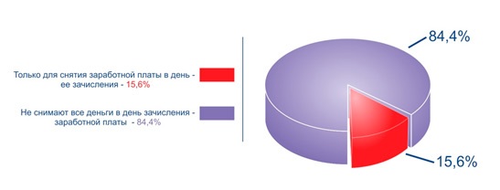 Стоит отметить, что все больше белорусов предпочитает расплачиваться карточкой, а не снимать всю зарплату разом. Только 15,6% сразу обналичивает всю зарплату целиком. Остальные в большей степени предпочитают расплачиваться карточкой.