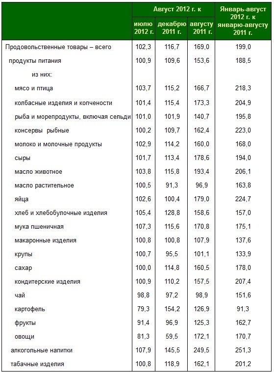 Цены на продовольственные товары, по данным Белстата, с начала года выросли на 16,7%, на непродовольственные – на 7,8%. Больше всего подорожали за восемь месяцев 2012 года услуги, тарифы на которые поднялись с января на 22,8%. За август рост составил 6%.