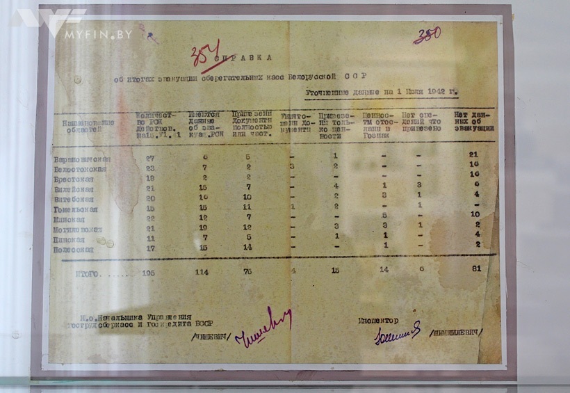 Итоги эвакуации белорусских сберкасс на 1 июля 1942 года.
