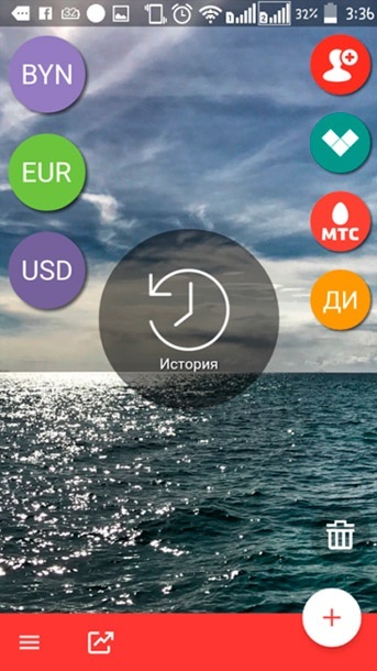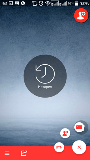 Первое, что бросается в глаза при запуске приложения – необычный дизайн и логика совершения операций. INSYNC.BY выглядит словно естественное продолжение мобильной операционной системы. Основное его меню похоже на очередной рабочий стол. В правом верхнем углу в нём отображается иконка для совершения платежей, в нижней части экрана расположены различные вспомогательные меню. Всякий раз, когда вы будете запускать приложение, в первую очередь будете попадать именно сюда.