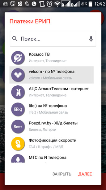 Фактически в приложении реализован “умный поиск” по дереву ЕРИП, работающий по аналогии с Google. Это решение, которое значительно экономит время при совершении платежа. Ведь как мы обычно совершаем платёж через ЕРИП? Прокручиваем длинный список услуг, ища необходимый, и не находя его в искомом разделе, снова прокручиваем ещё один длинный список. И так до победного конца. Здесь же мы избавлены от этой проблемы, и можем совершать платёж буквально за пару кликов.